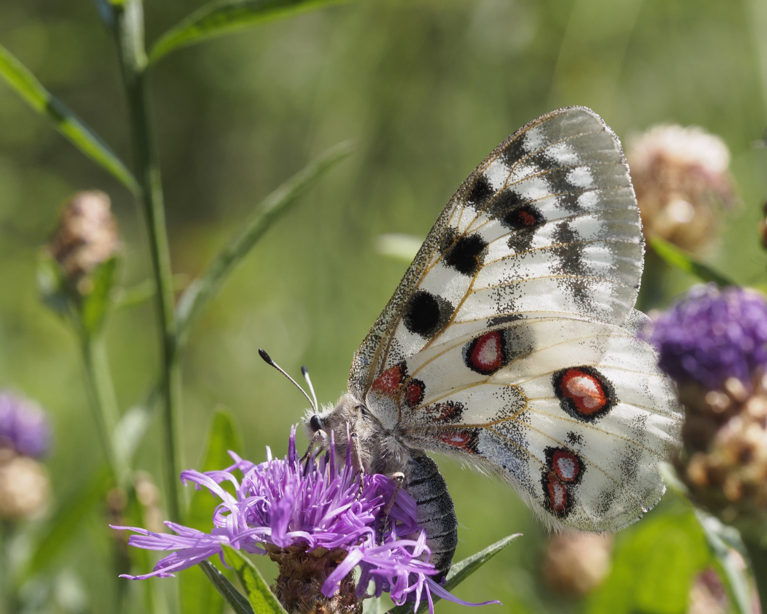 Die Ritterfalter gehören weltweit zu den schönsten und größten Tagfaltern. In Deutschland finden wir nur vier dieser bewundernswerten Schmetterlingsarten. Neben dem Roten Apollofalter sind das der Schwarze Apollofalter (Parnassius mnemosyne) sowie der Schwalbenschwanz (Papilio machaon) und der Segelfalter (Iphiclides podalirius).